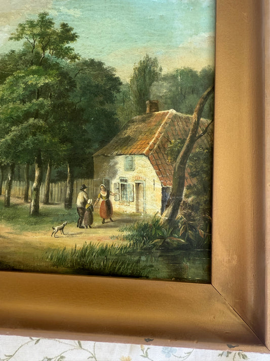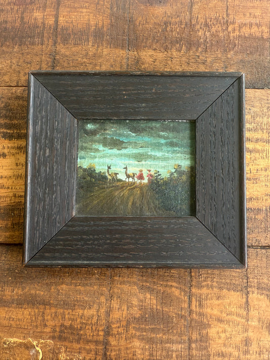 19th Century Wanamaker Collection Miniature Oil Painting – Figures with Llamas on a Country Path