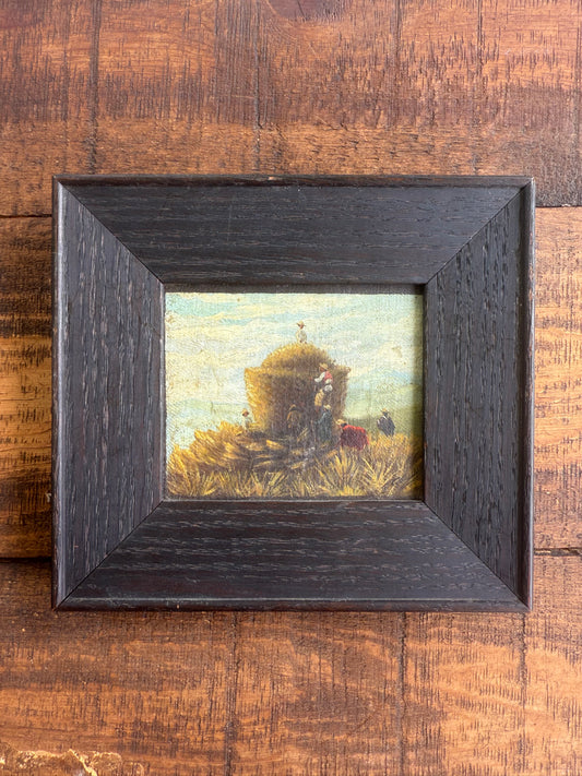 19th Century Wanamaker Collection Miniature Oil Painting – Harvest Scene with Hay Cart