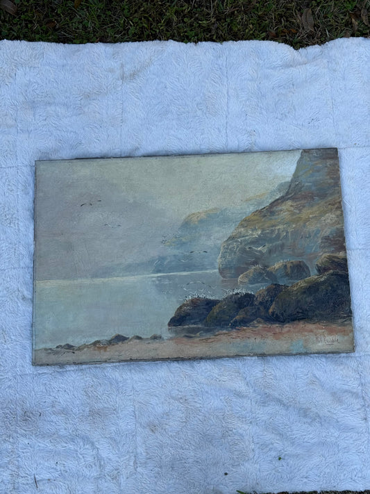 Antique 19th-Century Coastal Seascape Oil Painting by William H. Rumble | 20x30 Original Maritime Landscape