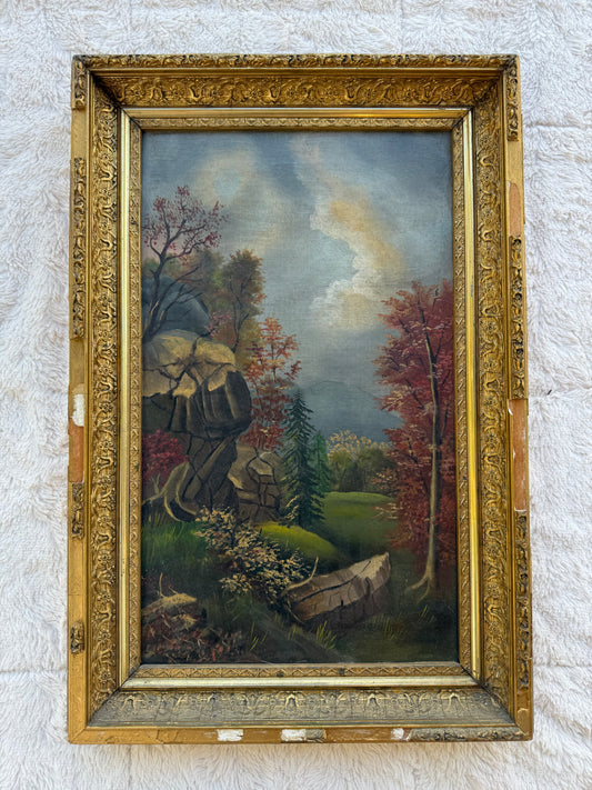 Antique American Autumn Landscape Oil Painting, c.1880–1900, Original Gilt Frame (J.L. Phelps, Rochester NY)