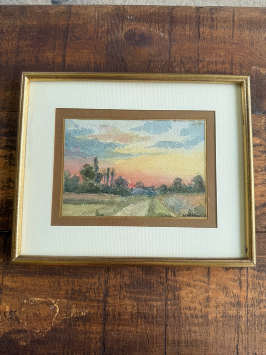 A. Giraud (1910) French School Influence Watercolor – Countryside Road at Sunset