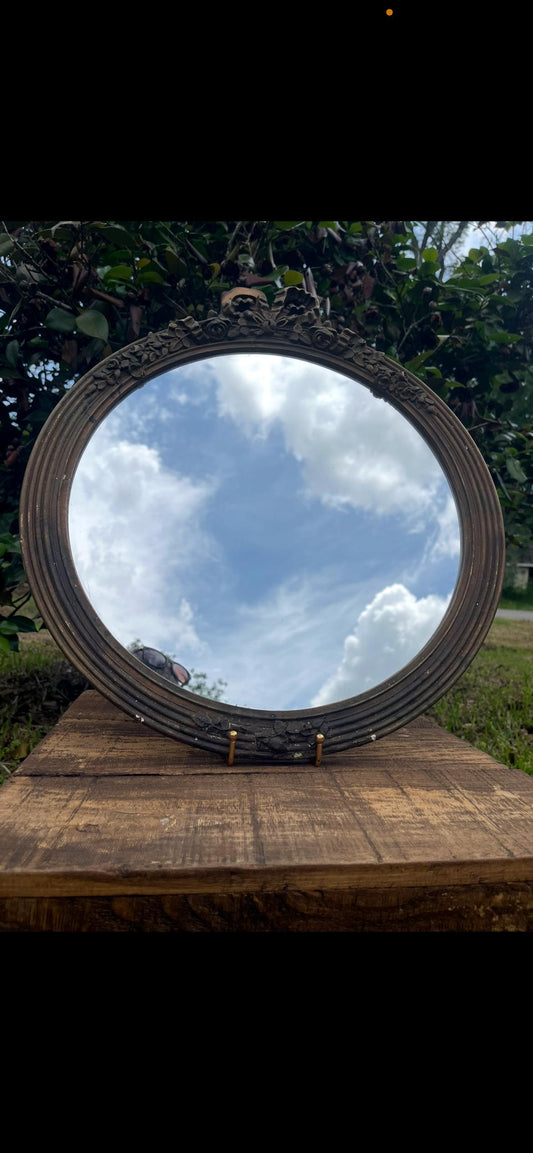 Antique Bow-Top Mirror | 18" Gilt Wall Mirror with Replaced Glass | French Style Frame | Chipped Crest | Ornate Vintage Mirror