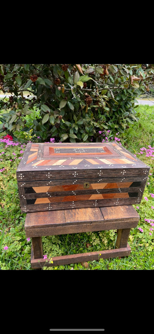 1930s Middle Eastern Parquetry Box – Porcupine Quill Inlay – Hardwood Jewelry or Gemstone Box – Vintage Inlaid Wood Box
