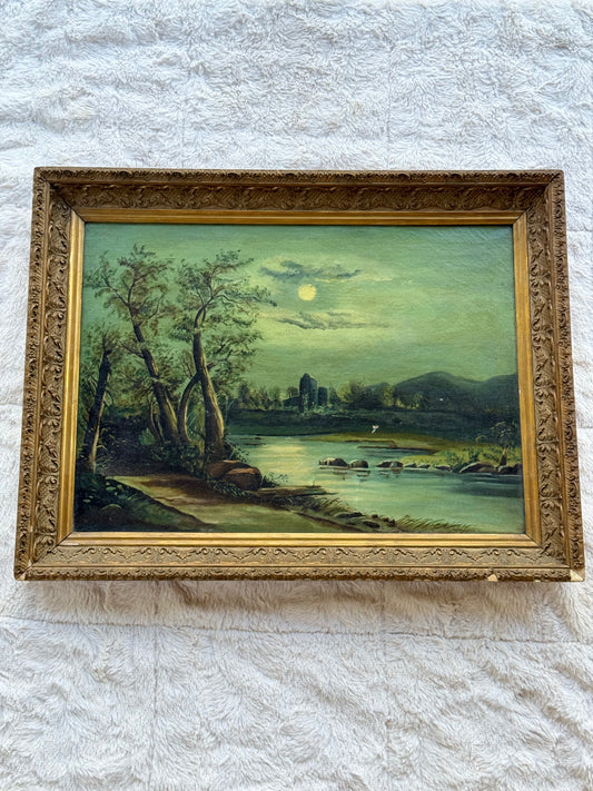 Moonlit American River Landscape – Hudson River School & Tonalist Influence (c.1880–1900)