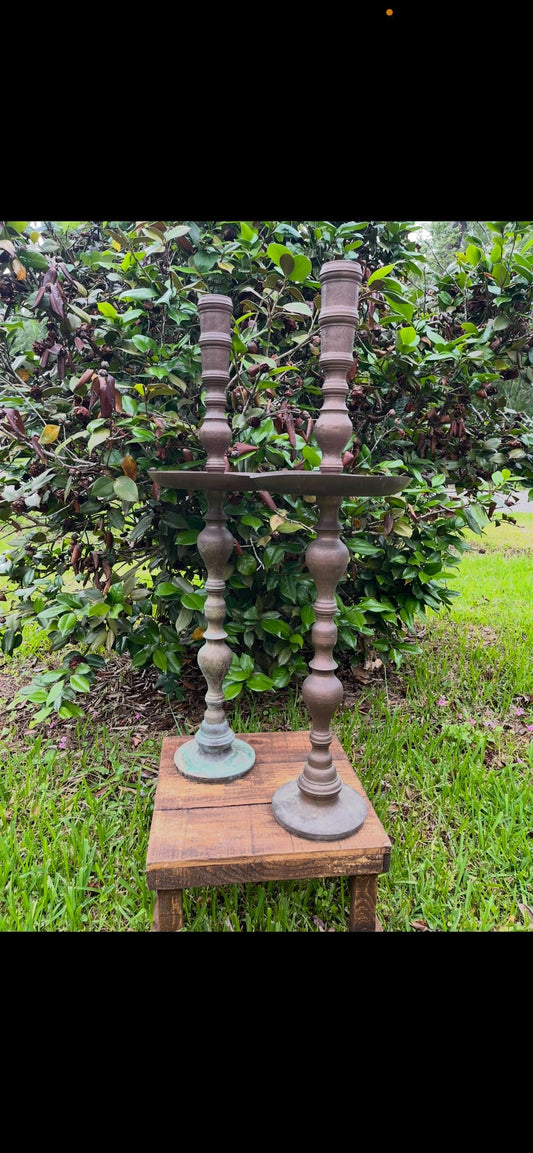 Antique Brass Altar Candle Holders | Ornate Church Candelabra Pair | Gothic Revival Style | Religious Decor | Tall Vintage Candlesticks