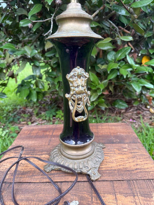 Antique Cobalt Blue Vase Lamp with Brass Lion Mounts – Converted Urn Table Lamp in Hollywood Regency or Eclectic Maximalist Style