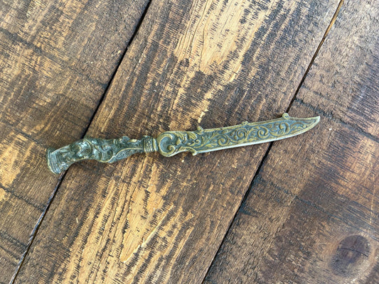 Antique Bronze Dog Letter Opener – Ornate Hound Handle with Engraved Blade – Unique Desk Decor or Gift for Dog Collectors