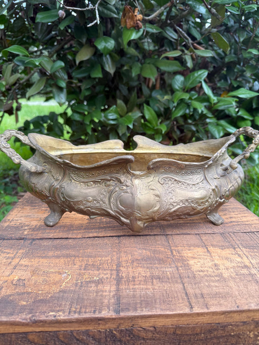 Antique French Rococo Jardinière Planter | Gilt Centerpiece | Ornate Louis XV Style Metal Cachepot | Decorative Bowl