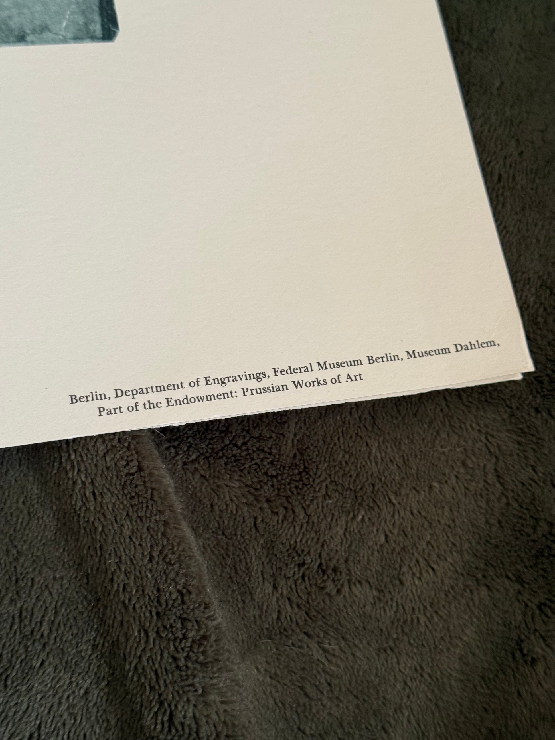 This example bears printed publisher and institutional credits along the margin, including Berlin museum references, indicating it was produced for educational, archival, or collector circulation rather than as a decorative poster. The paper is substantial and matte, intended to closely reflect the character of the original work rather than a glossy commercial finish.