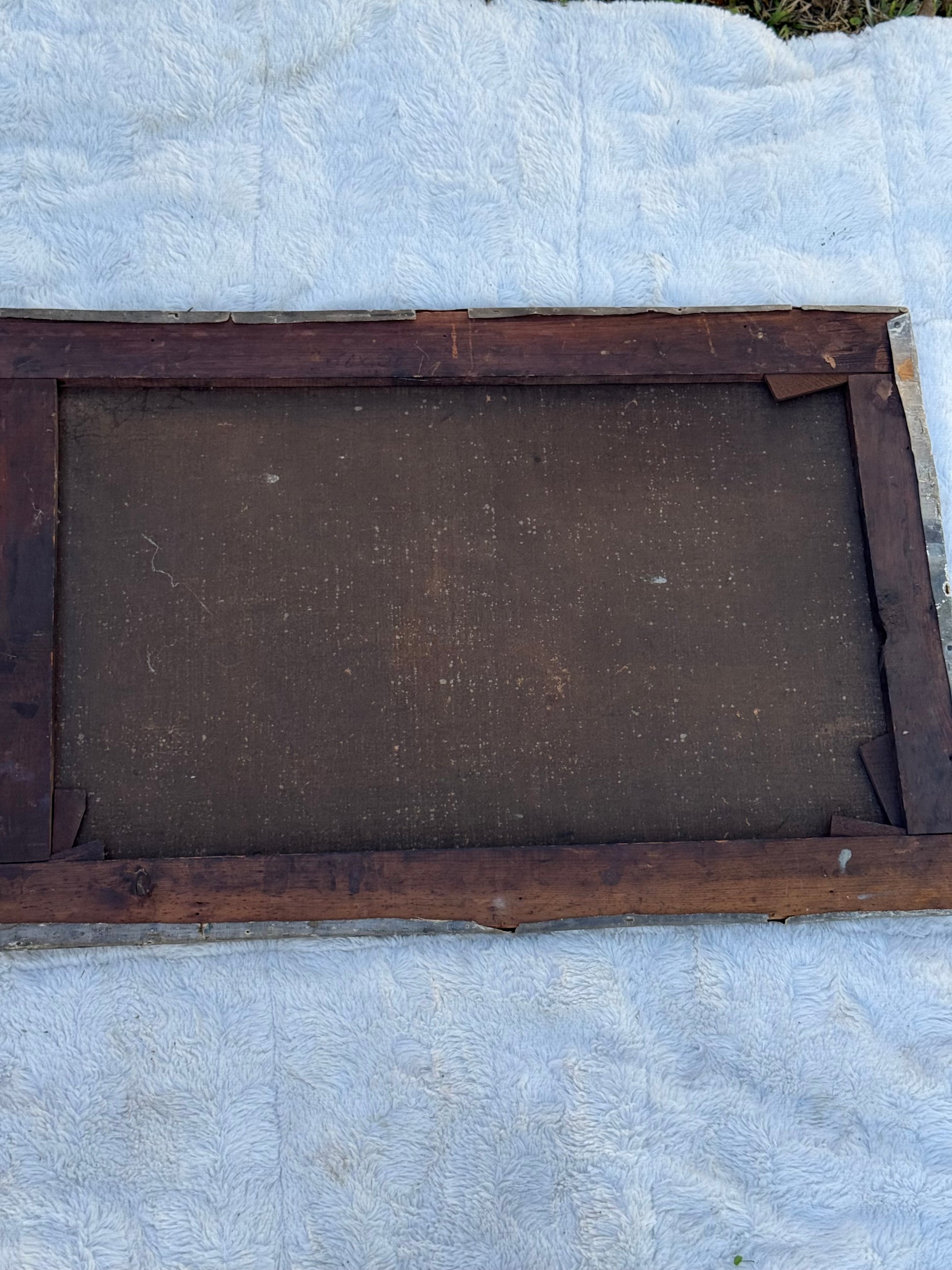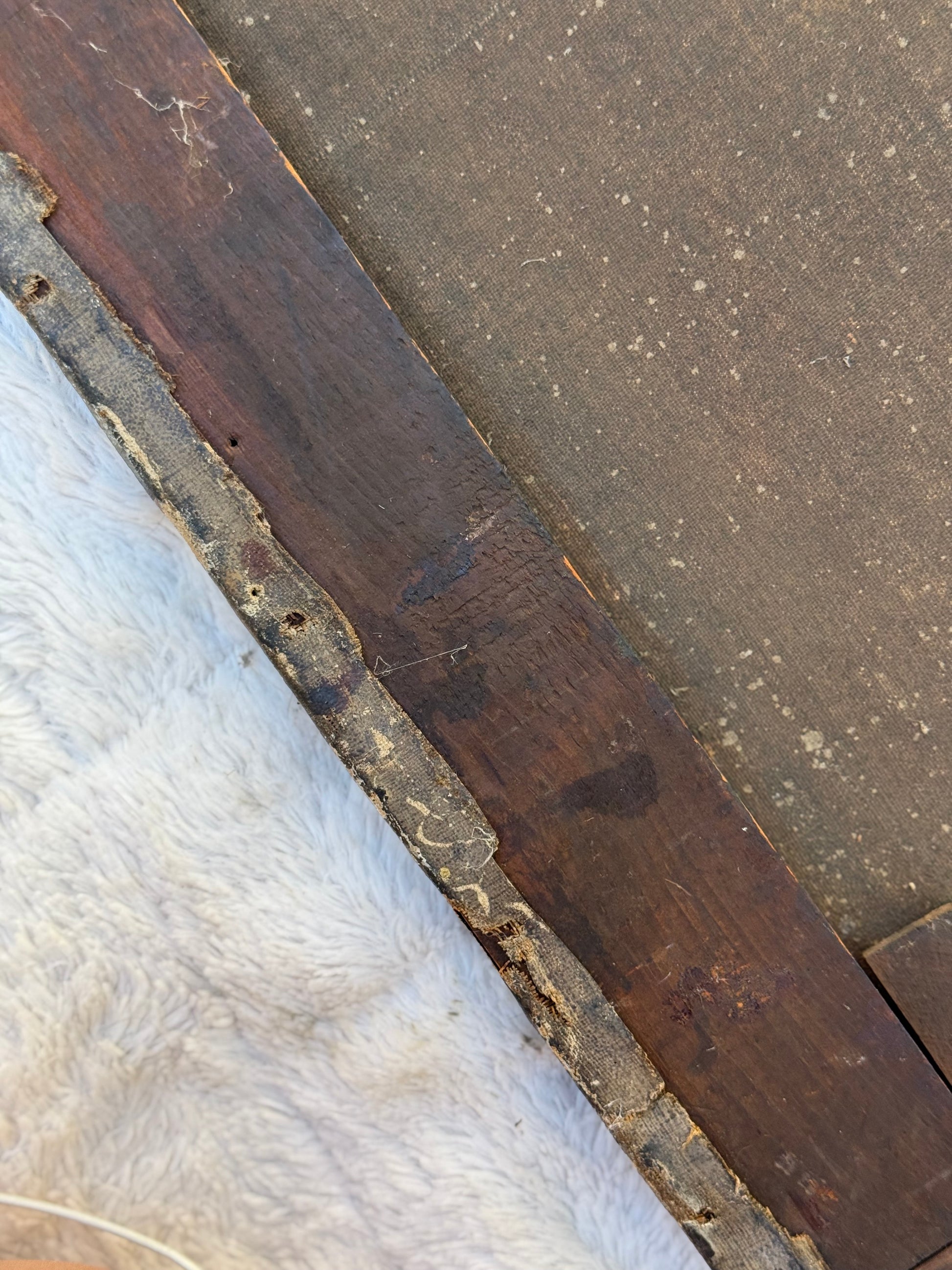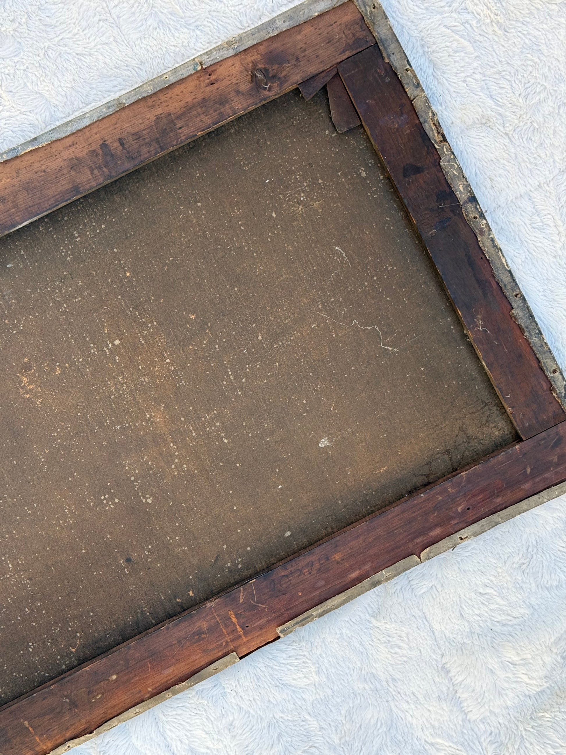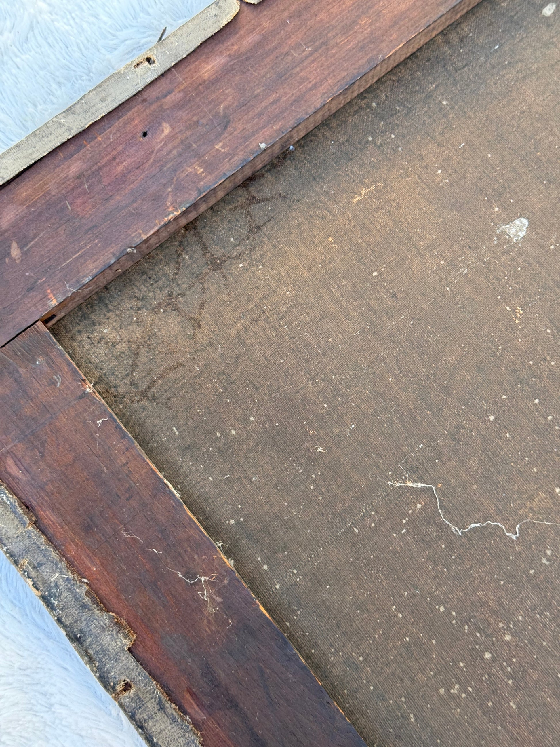 Condition: Antique surface craquelure, minor losses at lower edge, slight looseness to canvas, age-consistent wear to stretcher and tacking edges.