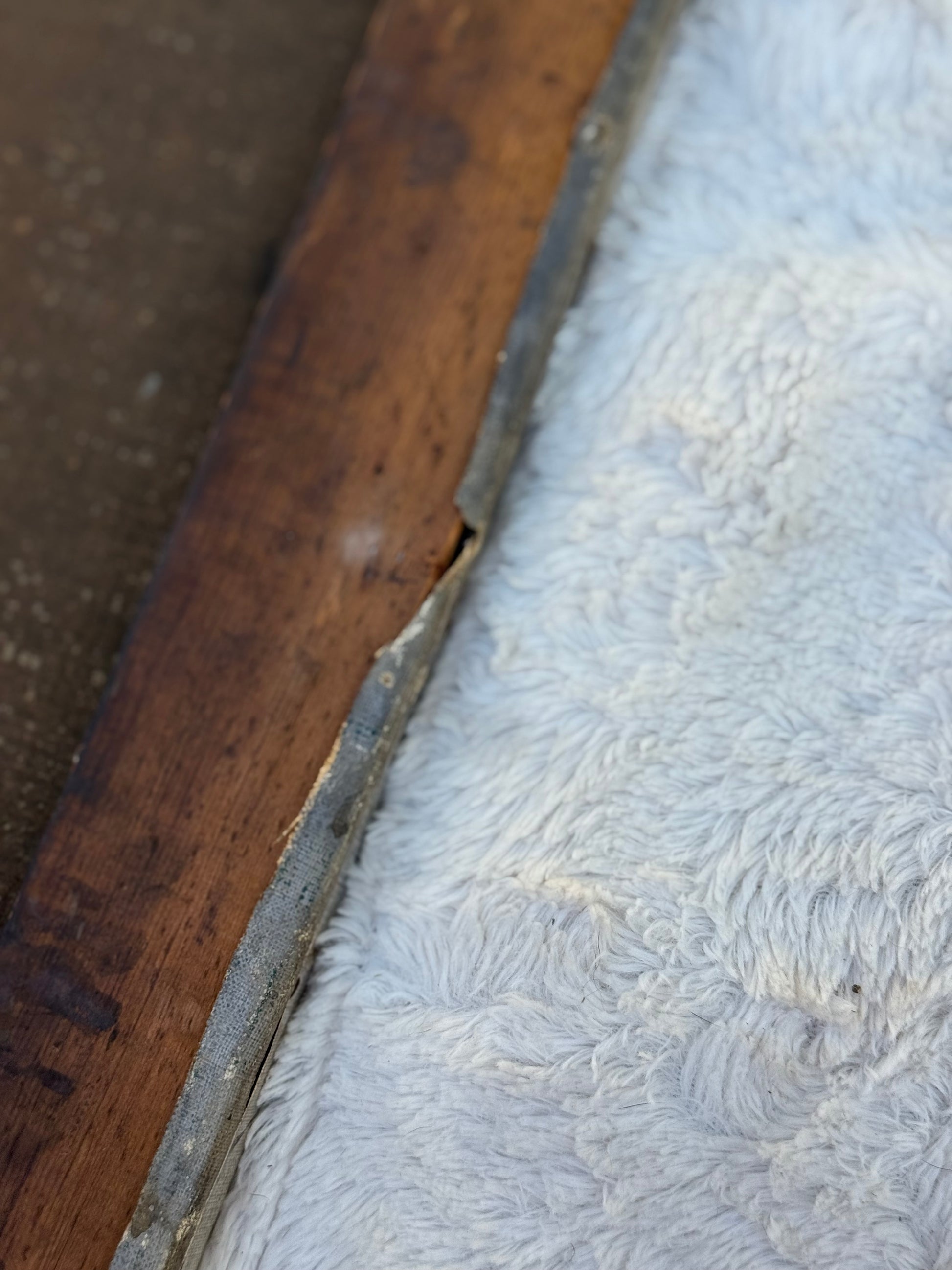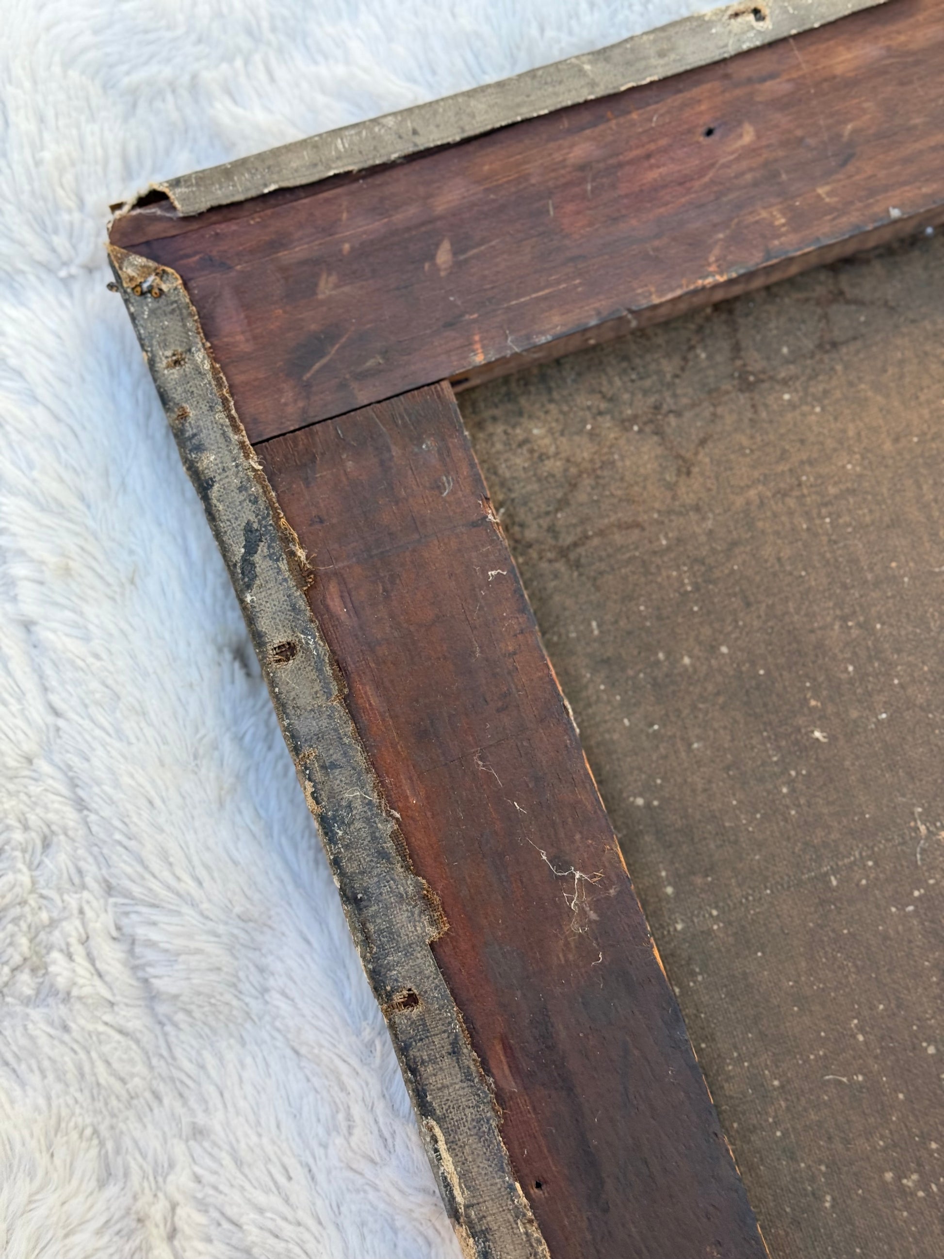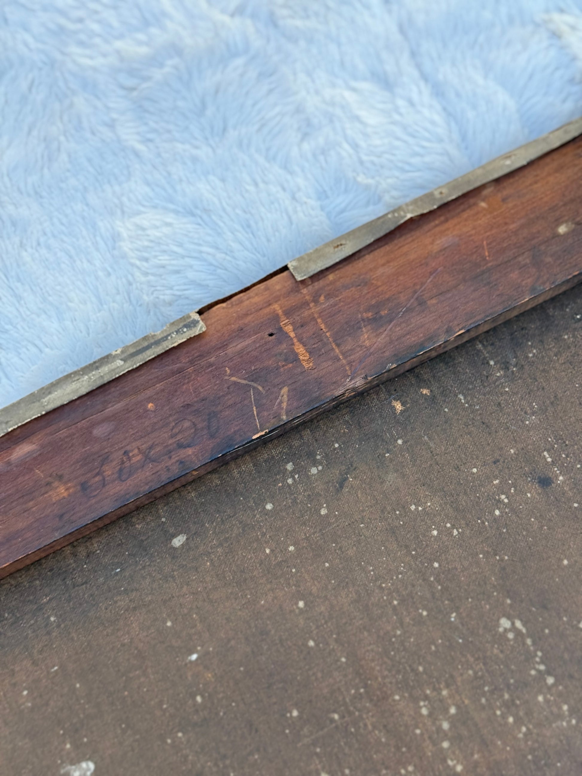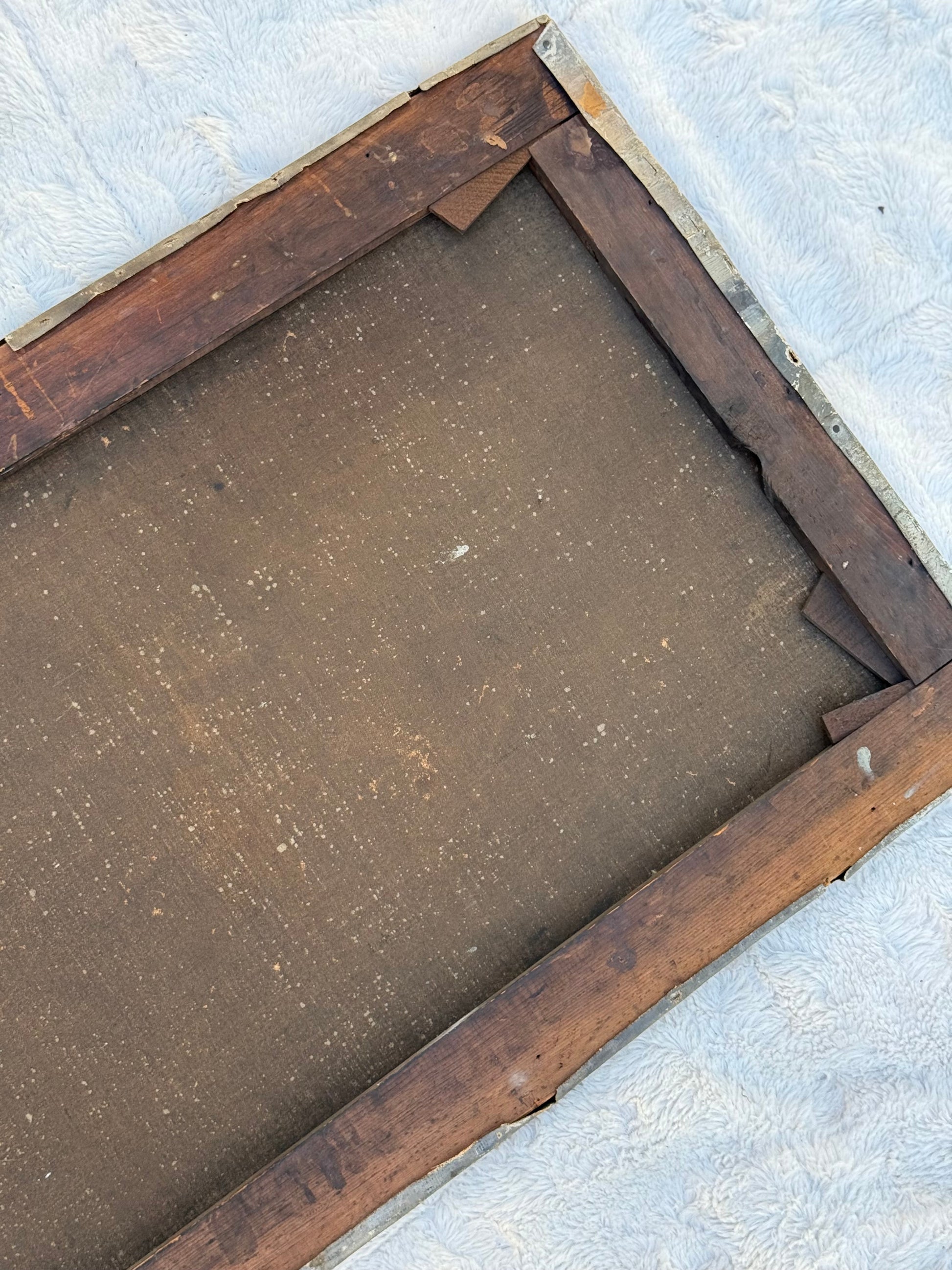 Condition: Antique surface craquelure, minor losses at lower edge, slight looseness to canvas, age-consistent wear to stretcher and tacking edges.