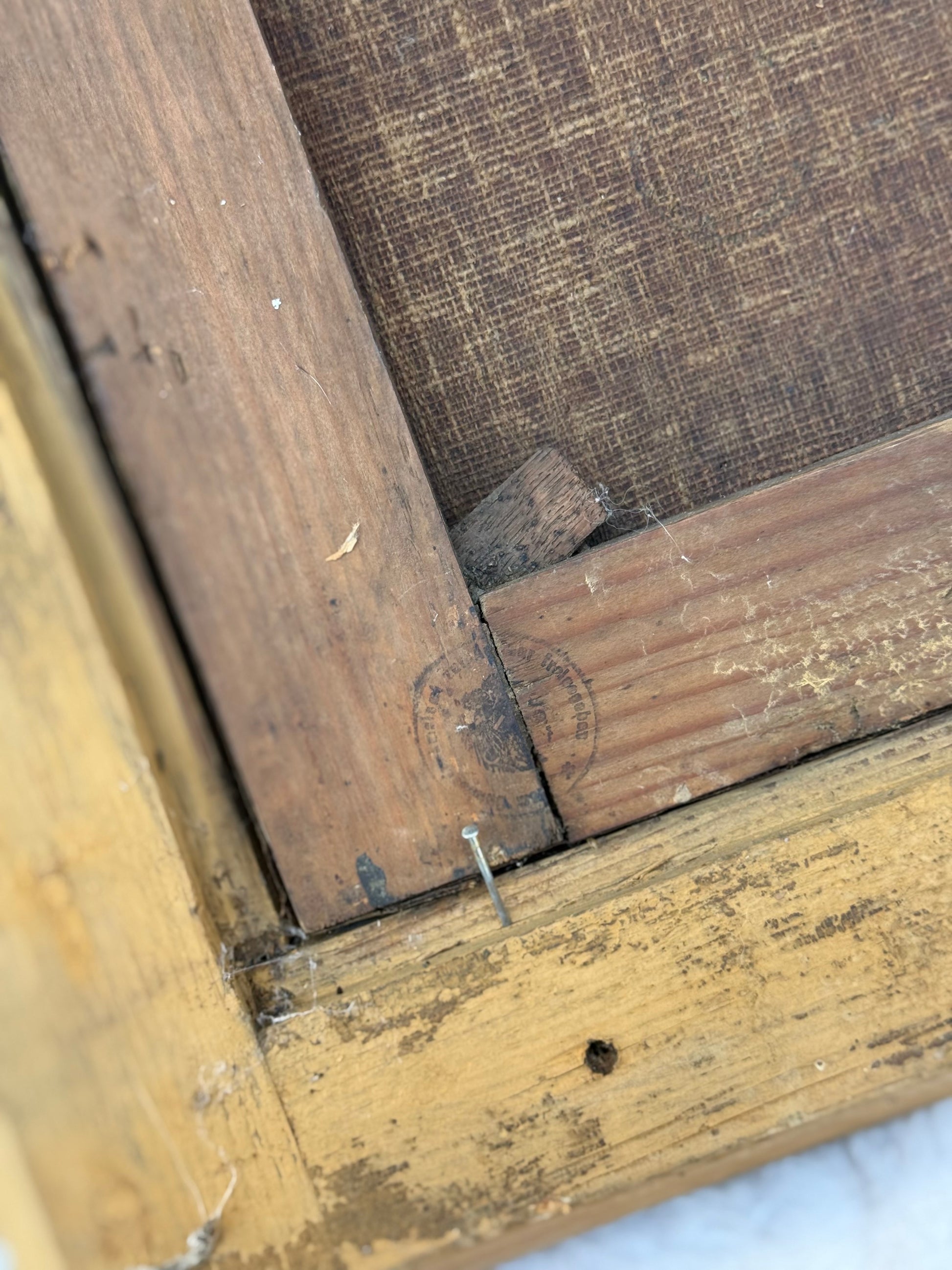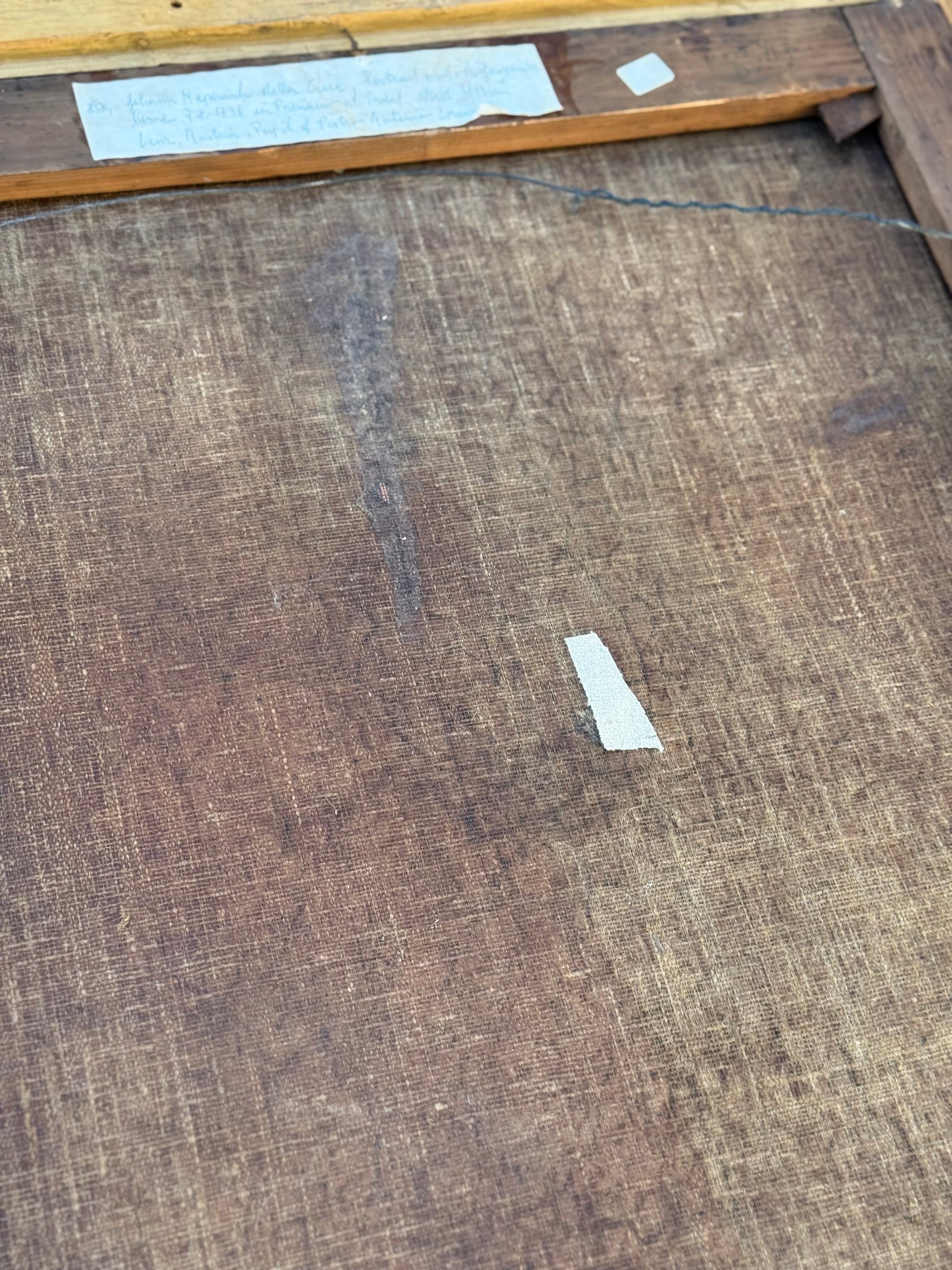 Provenance Indicators: Old European handwritten collection label; European stretcher stamp; period-correct construction